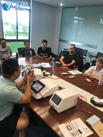 凈信資深工程師沈工在講解儀器實際操作問題