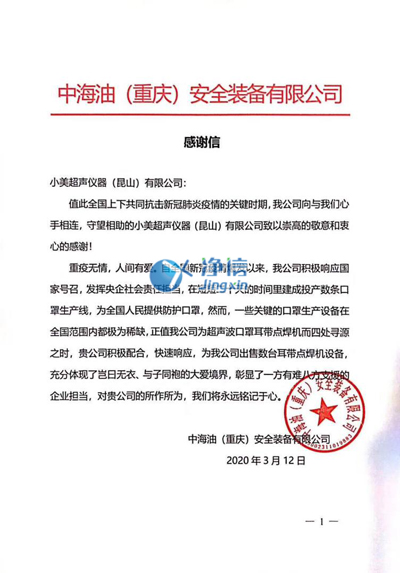 是的,這是我們小美超聲!抗擊疫情,我們不是旁觀者。我們與時間賽跑,推掉別的訂單,爭分奪秒加班加點(diǎn)的為中海油生產(chǎn)口罩耳帶點(diǎn)焊機(jī)。員工24小時兩班倒,靠吃泡面節(jié)省時間。力求在最短的時間內(nèi)把口罩機(jī)交到中海油的手上,大大提高了其口罩生產(chǎn)的產(chǎn)量。